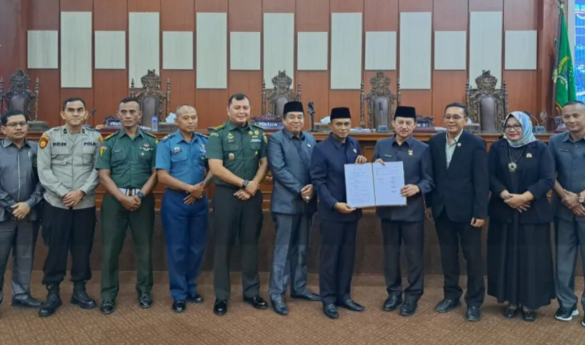 Kemudian dilanjutkan dengan penandatanganan berita acara pengambilan keputusan dan mendengarkan pendapat akhir walikota yang dibacakan oleh Eka selaku Pj Sekda.