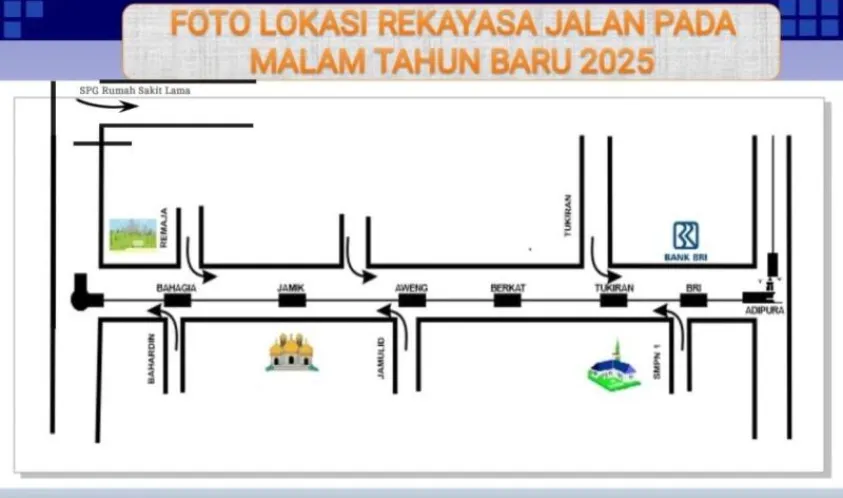 4. Dari Jalan Letnan Tukiran: Semua kendaraan akan diarahkan belok kiri menuju Adipura.
