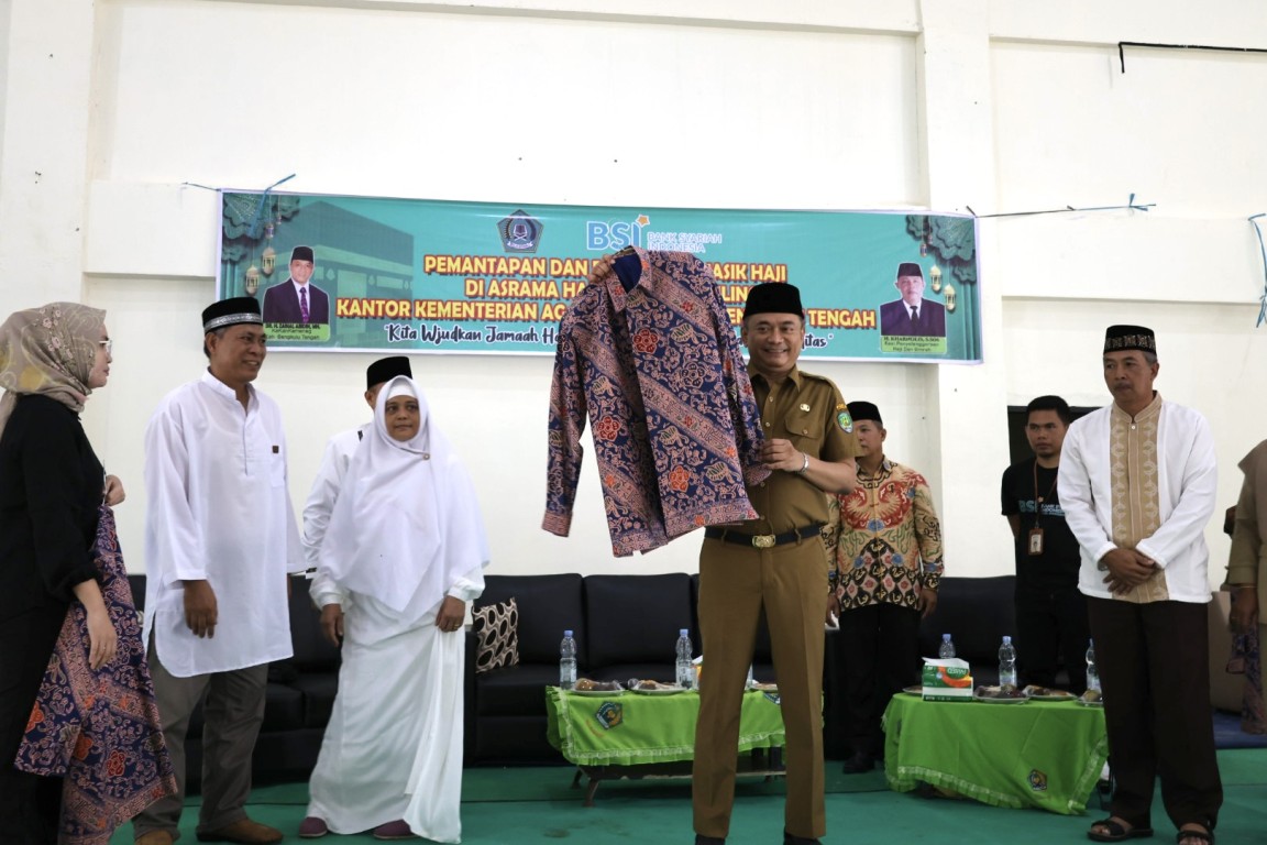 Sekretaris Daerah Bengkulu Tengah Drs. Rachmat Riyanto, S.T.,M.AP., dalam sambutannya memyampaikan akan menyumbangkan baju seragam batik untuk para jemaah haji.
