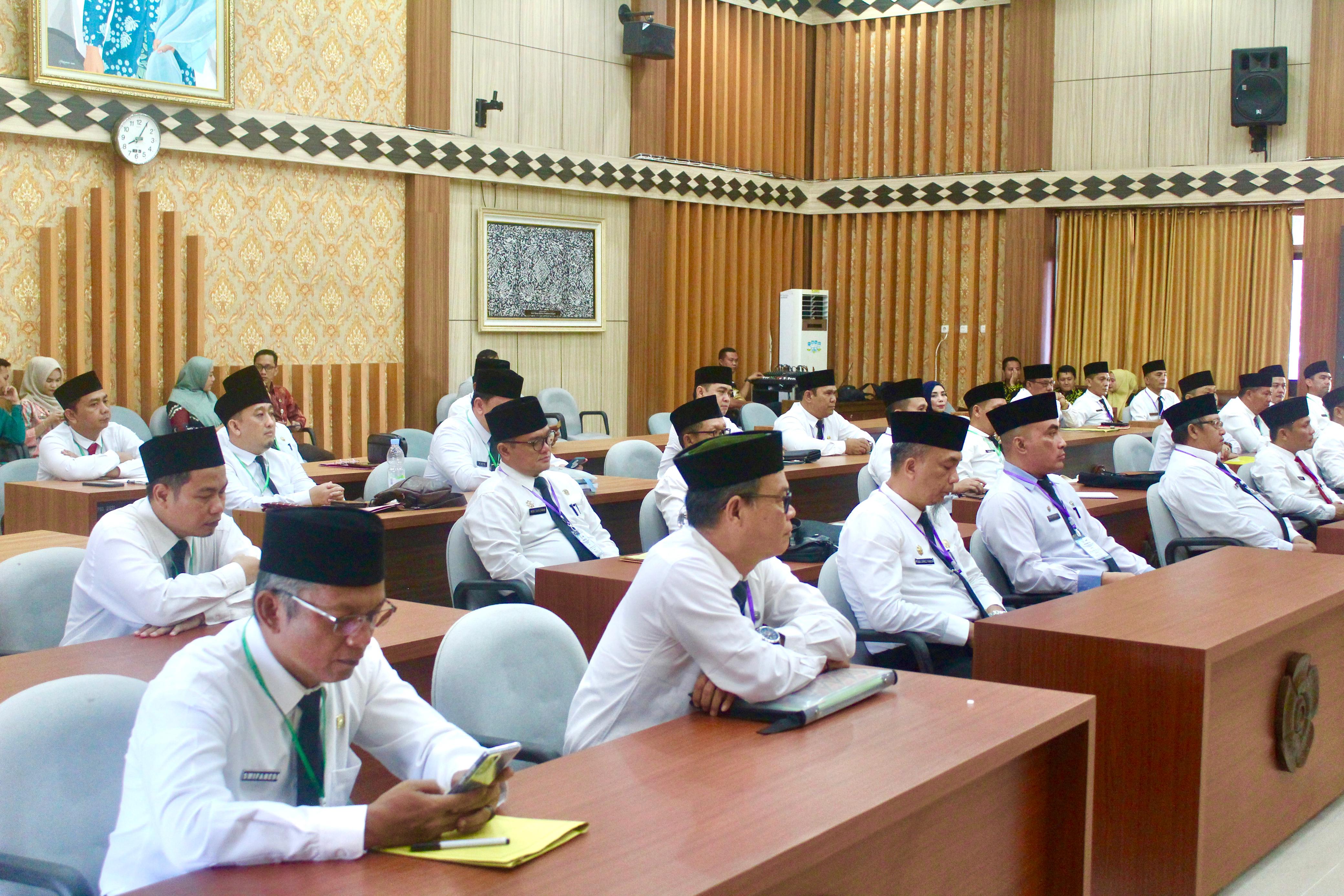Sekda Provinsi Bengkulu Isnan Fajri didampingi Asisten III Nandar Munadi membuka assesment seleksi JPT Pratama di Lingkup Pemerintah Provinsi Bengkulu, Jumat (19/04)/(Foto:Rilis MC)