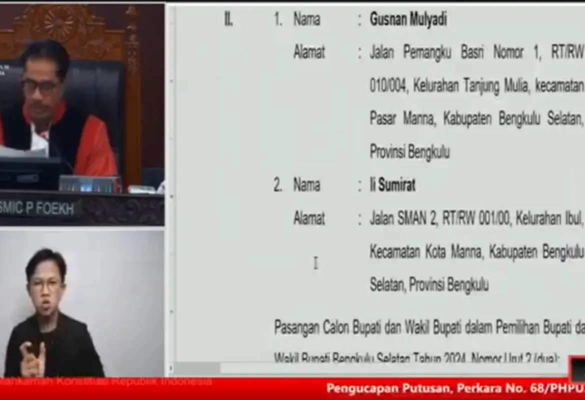 Drama Politik Bengkulu Selatan Memanas, MK Diskualifikasi Gusnan Mulyadi