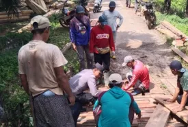 Sudah Tidak Bisa Dilalui Kendaraan, Polsek Maje dan Masyarakat lakukan Perbaikan Jembatan Seadanya