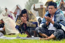Hujan Deras Warnai Shalat Idul Fitri di Bengkulu