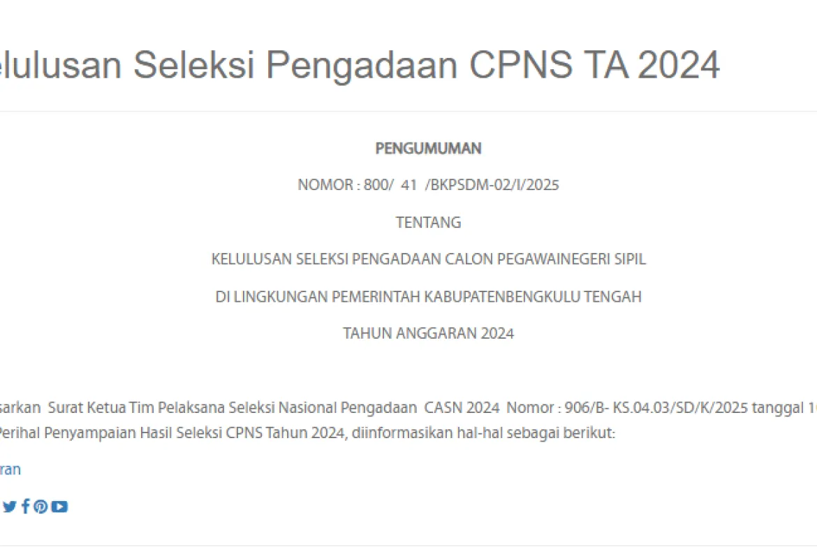 Pemkab Bengkulu Tengah Umumkan Hasil Seleksi CPNS 2025, 6 Sanggahan Diterima Ditolak